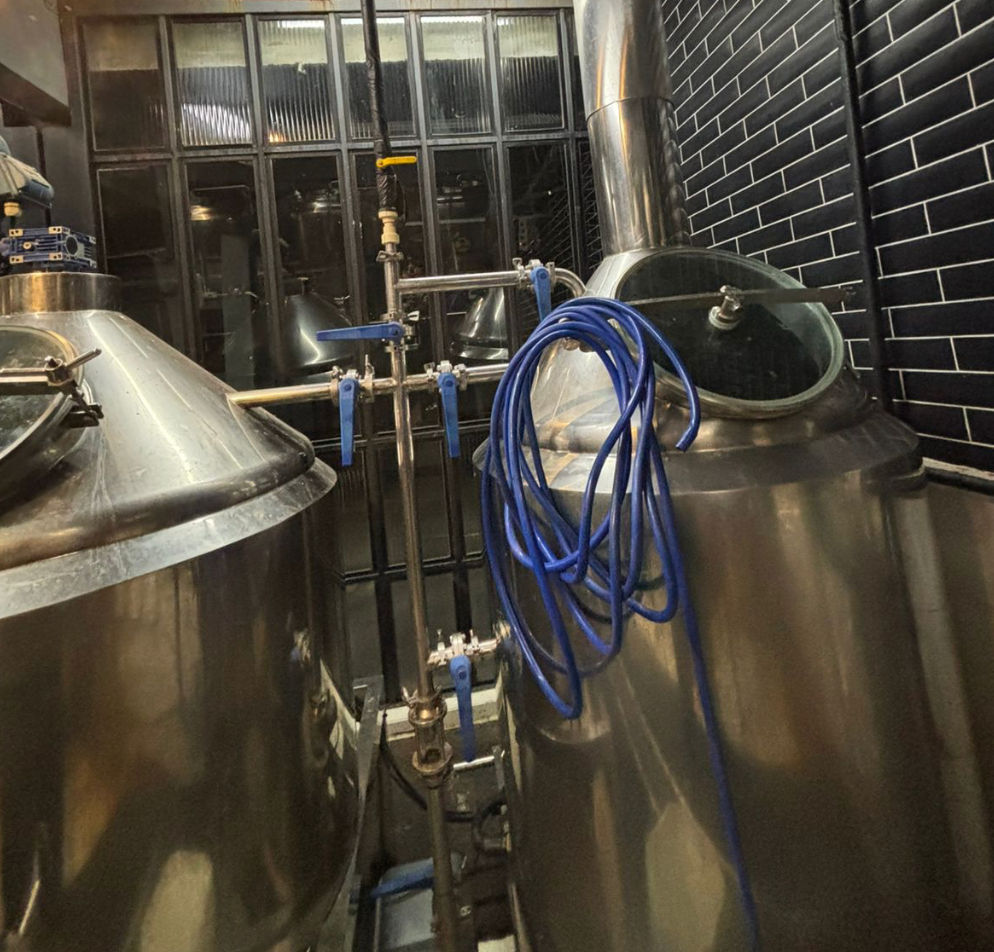 Configuração Tribloco: Tinas independentes para Mosturação, Clarificação e Fervura/Whirlpool, permitindo maior agilidade no fluxo de produção.