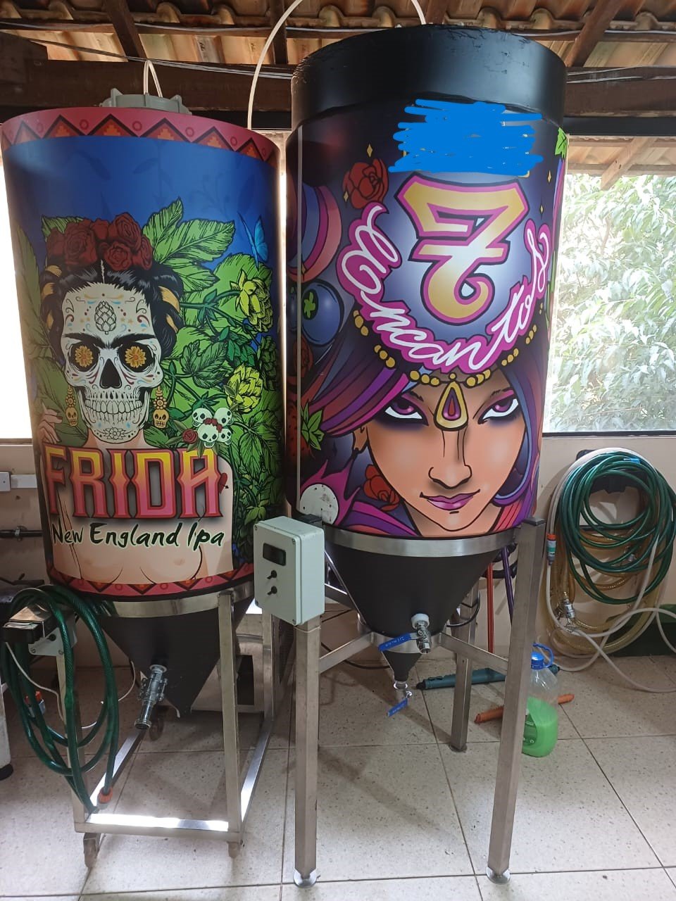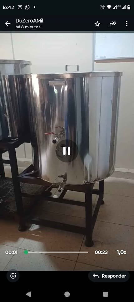 Cozinha de Brasagem Tribloco Inox - 3 panelas de 300Lts. Brew stand 3 Panelas 300lts Inox Mangueiras e conexões inox inclusas Bomba sanitária - 0,5cv Chiller resfriamento Aquecimento a gás nas 3 panelas e elétrico em 1 panela.